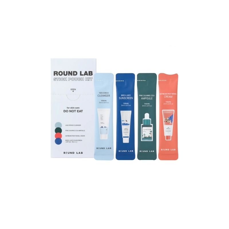 Conçu pour celles et ceux qui recherchent à la fois praticité et efficacité, le Stick Pouch Kit ROUND LAB propose quatre soins coréens essentiels dans un format unidose.